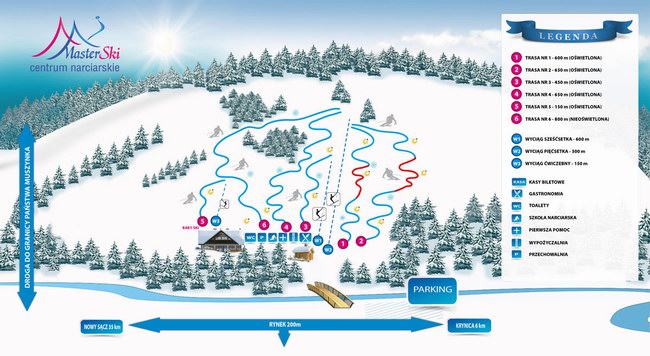 Do dyspozycji narciarzy jest 6 tras narciarskich (w tym jedna dla dzieci) oraz 3 wyciągi orczykowe. Master-Ski dysponuje wypożyczalnią sprzętu narciarskiego i snowboardowego, szkołą narciarską z wykwalifikowanymi instruktorami oraz bezpłatnym parkingiem oraz regionalną karczmą.